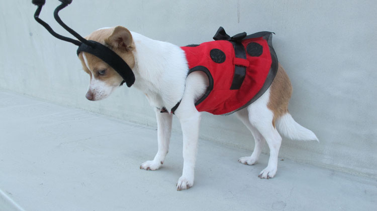 Tamale finally gets a look! She wanted to be a bumble bee but she settles with a lady bug. She was such a good sport!