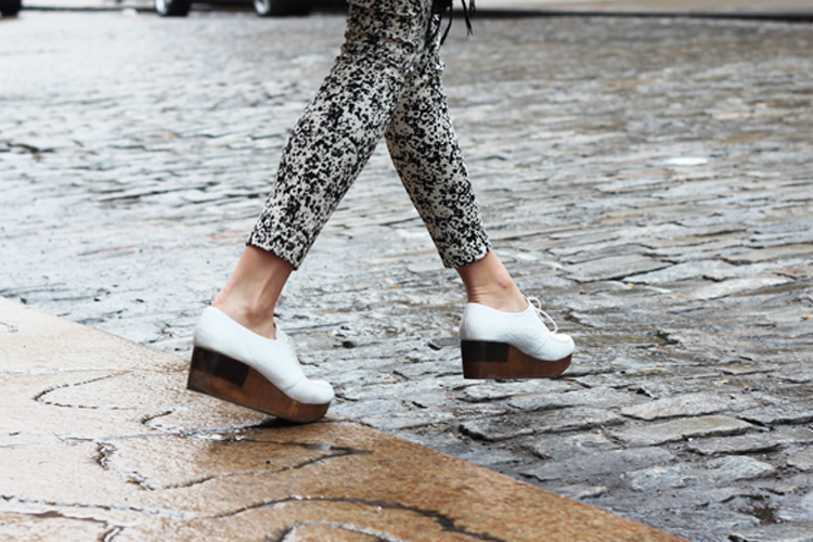 AGAIN RECLUSIVE trousers (here, here)/ Vintage Fur from Reformation/ Reformation Vest/ Weekdays Crop Top/ LD Tuttle Heel